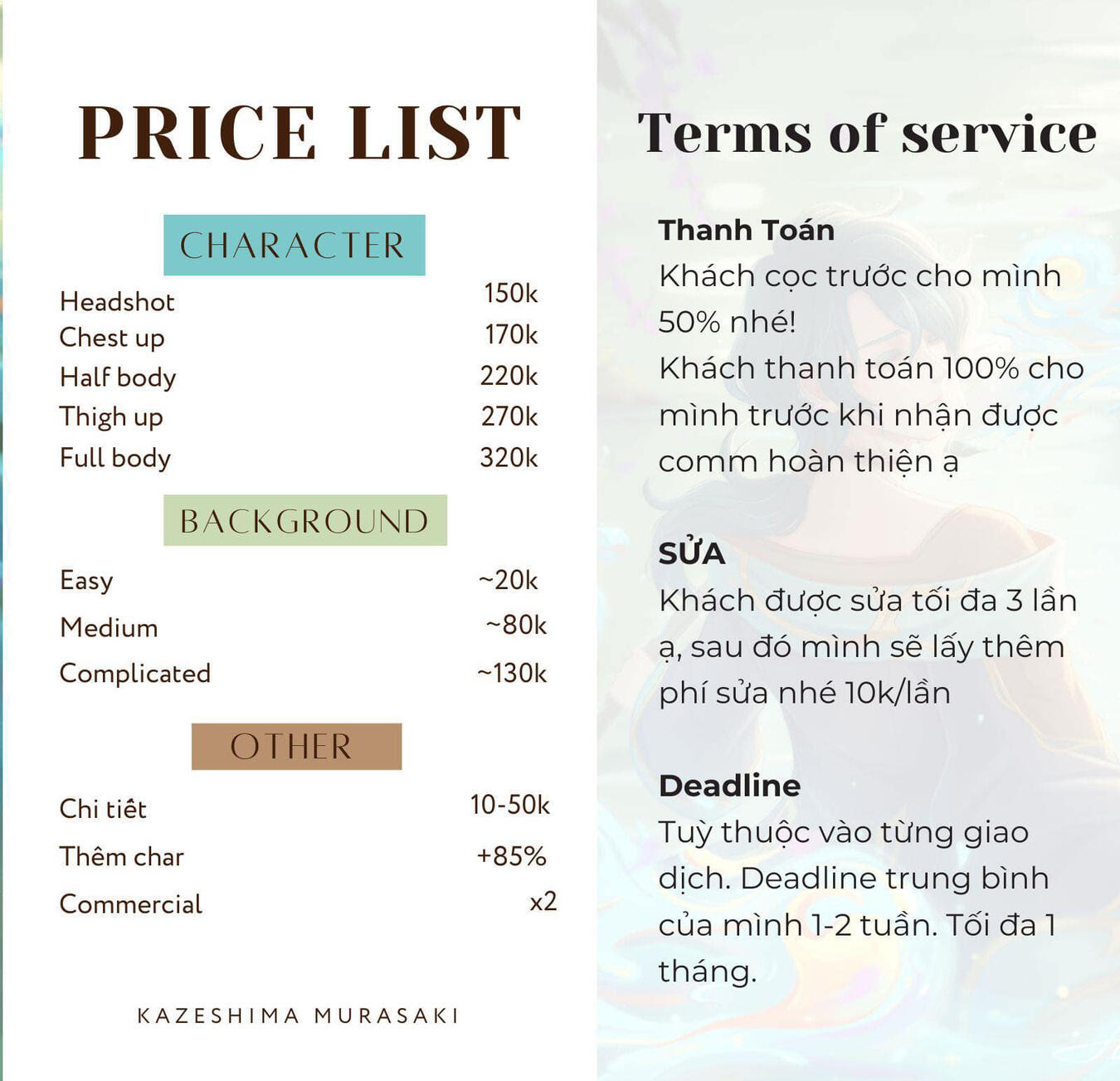 - Please make a deposit of 30%-50% before I do sketching!